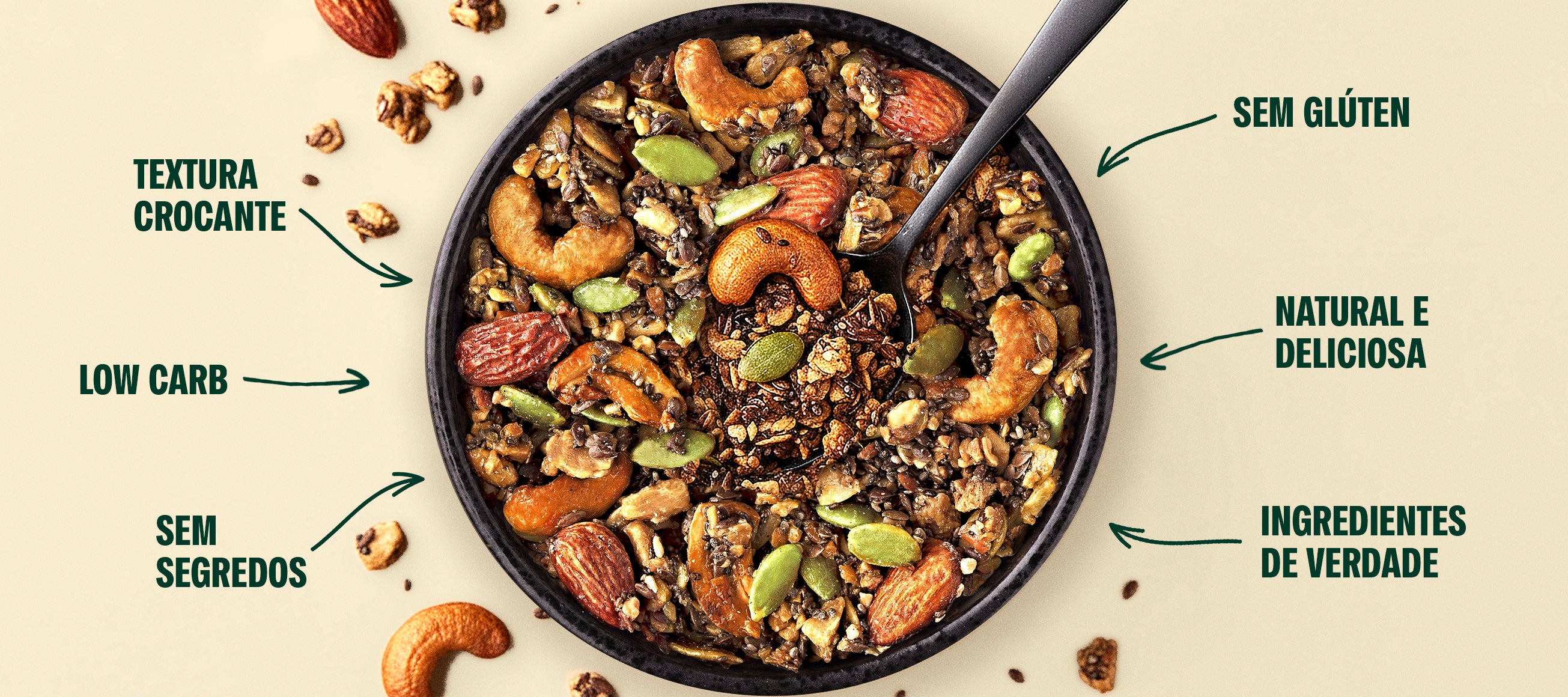 Nada de granola molenga ou com gosto de dieta. Aqui é barulho bom no dente e alegria no intestino crocante, viciante e 100% natural.